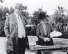 Julia Morgan with William Randolph Hearst as they discuss plans for the construction of Hearst Castle.