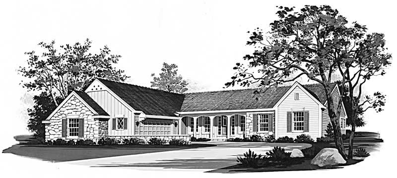 This lovely country style home design has 2,129 square feet of living space. The two-story floor plan includes 3 bedrooms and 2.5 bathrooms.